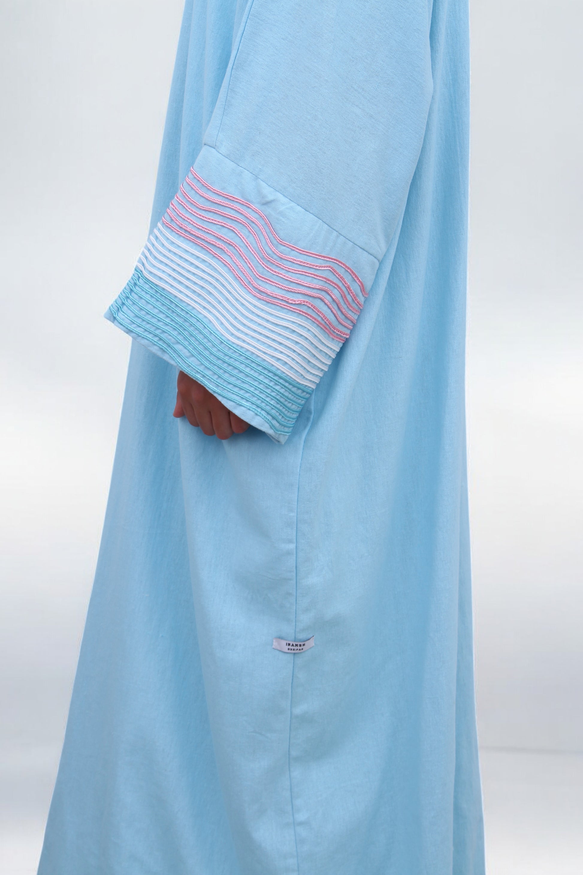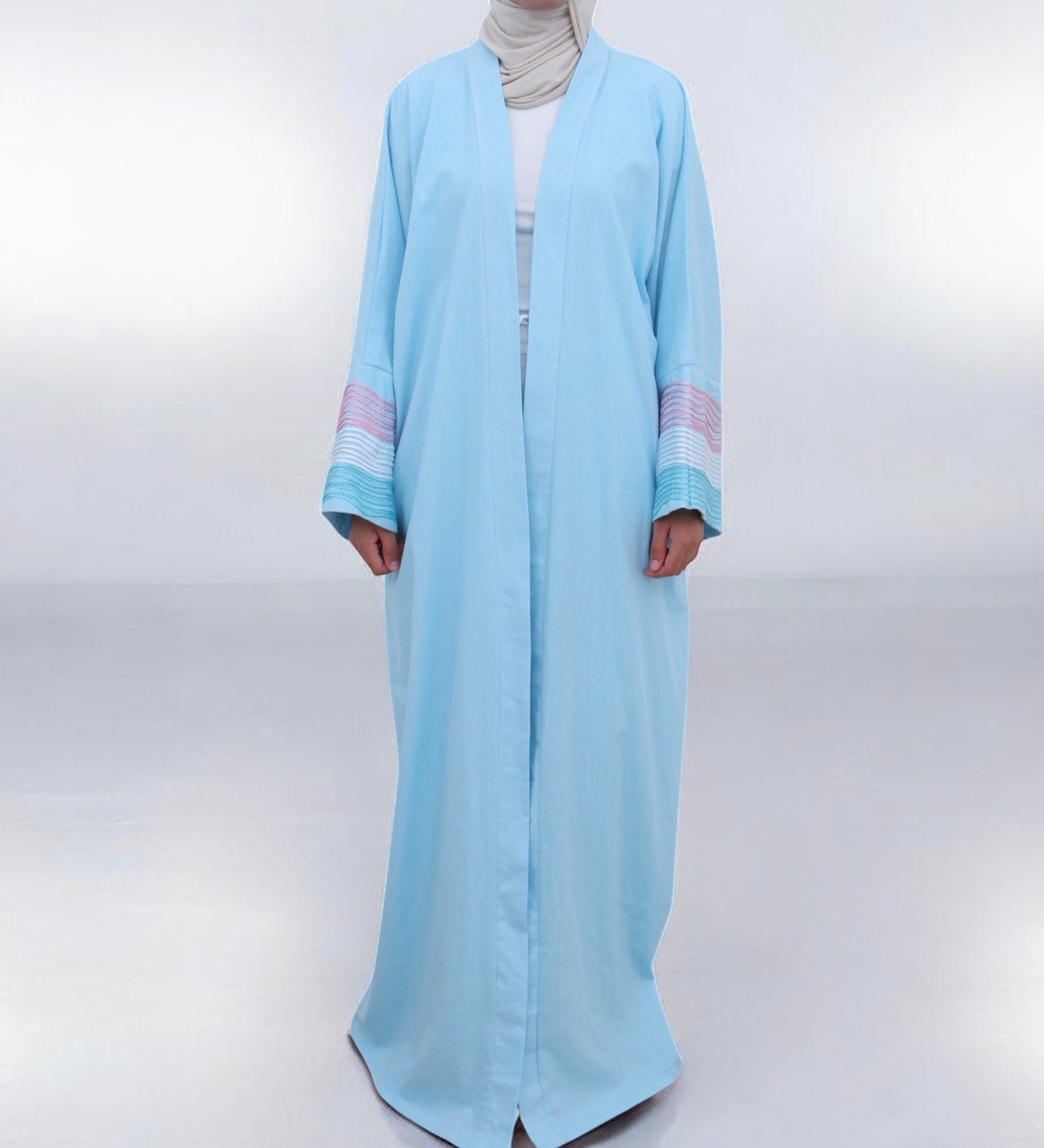Sky Pop apporte une touche de fraîcheur à votre été. Ce bleu vif et lumineux évoque les ciels dégagés et les journées ensoleillées. Avec sa texture légère et sa couleur moderne, cette abaya est idéale pour celles qui aiment l’élégance avec une pointe de légèreté