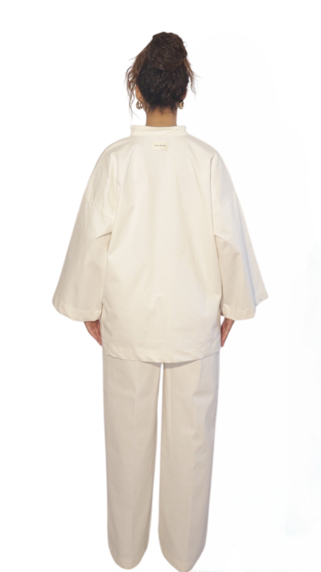 Its loose silhouette flows effortlessly, offering freedom and grace without losing structure. Whether worn casually or styled with intention, it becomes a piece that stays — not just for a moment, but for all year round.